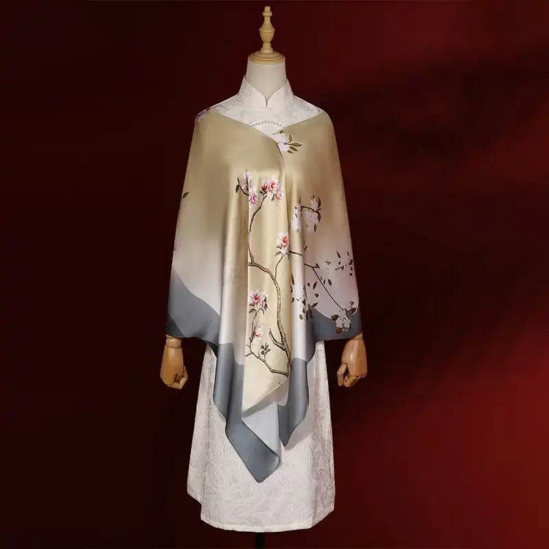 Indulge in the luxurious touch of our 100% Mulberry Silk shawl scarf, renowned as the “Queen of Fibers” for its unparalleled softness and natural temperature-regulating properties. This exquisite scarf ensures warmth in winter and coolness in summer, providing a soothing and breathable experience for your skin all year round.