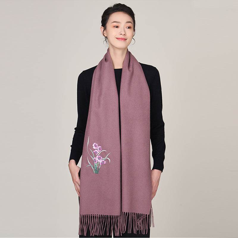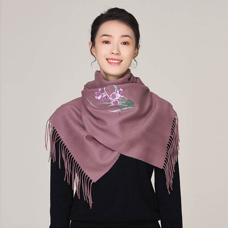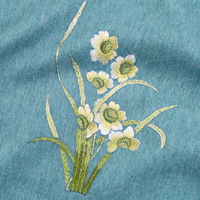 - Features: Cashmere-wool blend fabric is soft, warm, and delicate, with double-sided embroidery where both sides feature the same pattern.