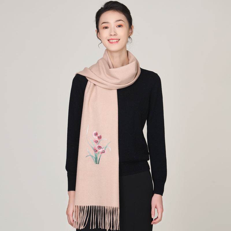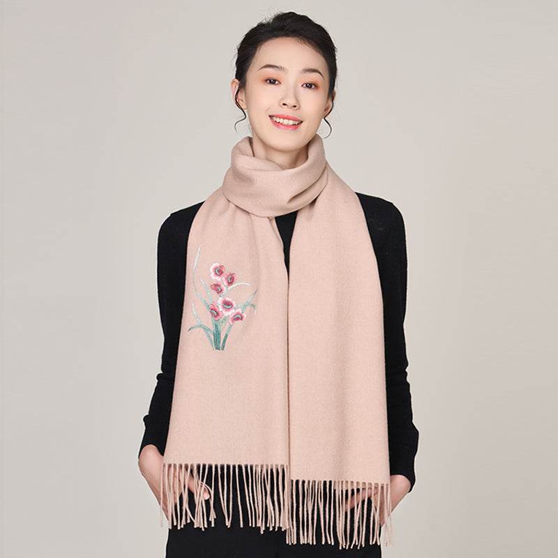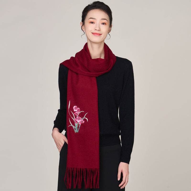 Embroidery 100% Pure Wool Cashmere Scarf for Winter 200×60 cm