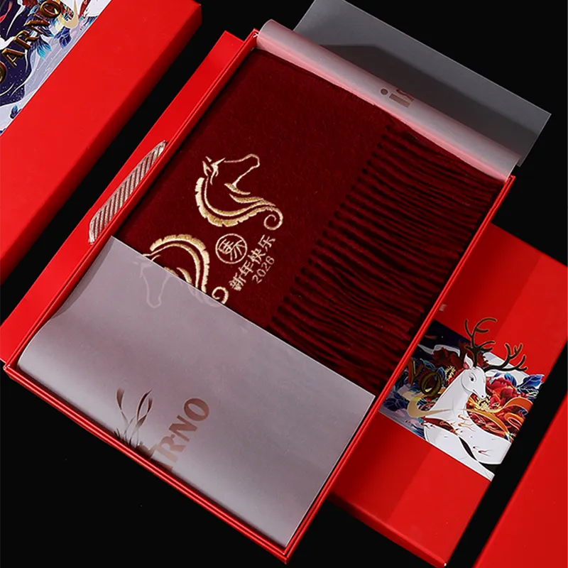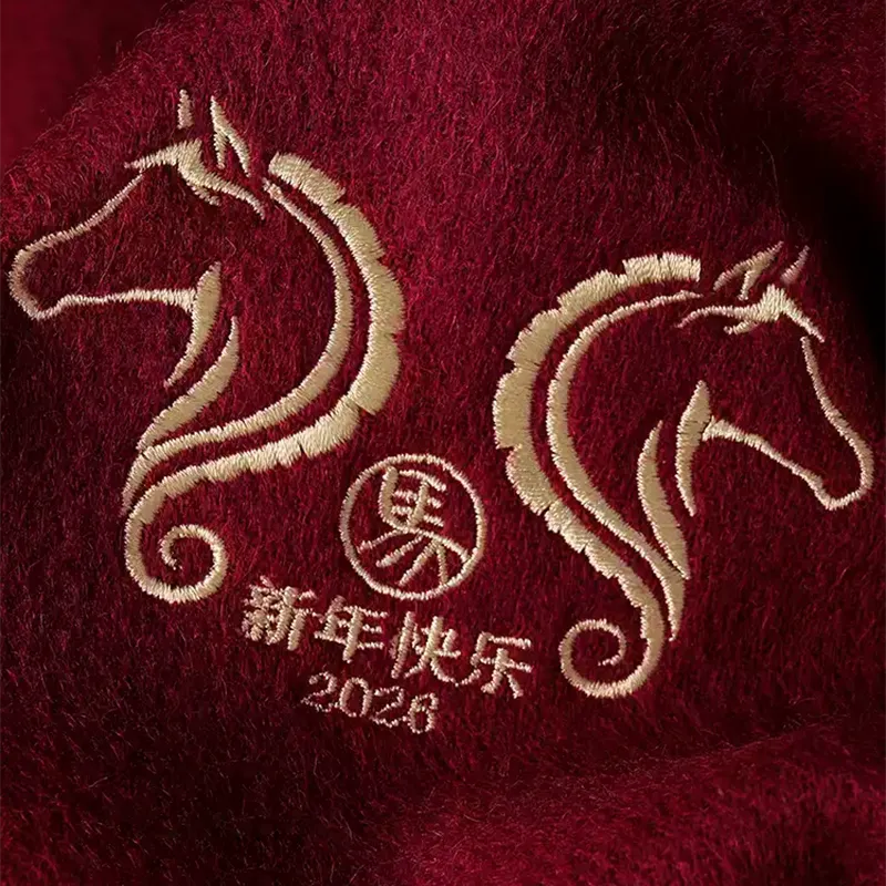 【Exquisite Embroidery】Featuring elegant embroidery with the Chinese characters “Happy Horse Year 2026,” each scarf celebrates the joy and prosperity of the Lunar New Year with timeless cultural beauty.