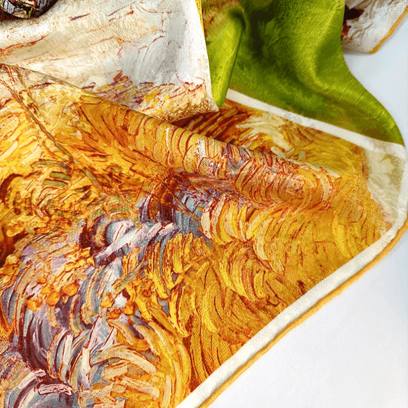 【Hand-rolled Edge】The delicate hand-rolled edge prevents the scarf from wrinkling easily and helps prevent fraying. Packed with details, it not only enhances practicality but also adds to its aesthetic appeal.