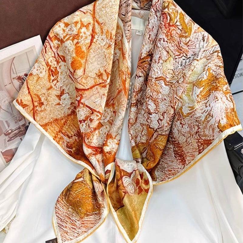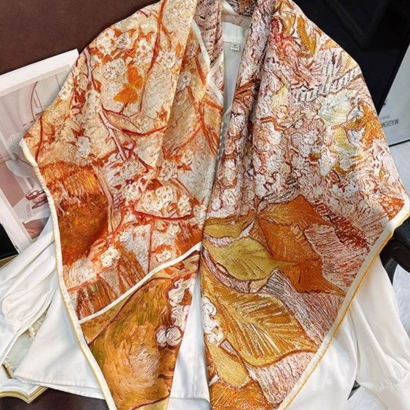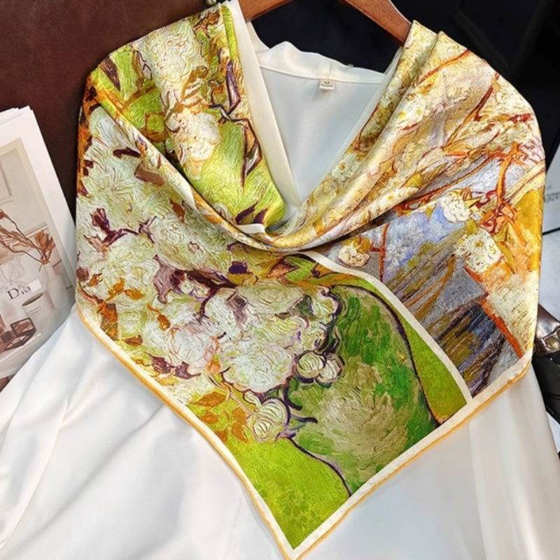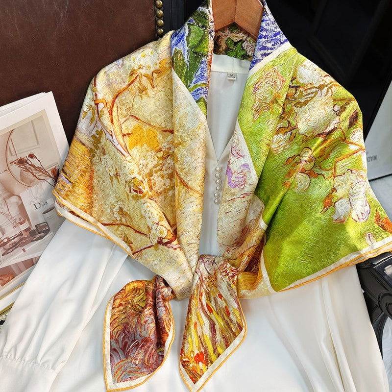 A vibrant canvas of spring, brimming with life. Each scarf is a living masterpiece, vividly portraying the beauty of spring. Elegant and refined, exquisitely beautiful. Showcasing unique artistic charm, allowing you to immerse in the warmth of spring.