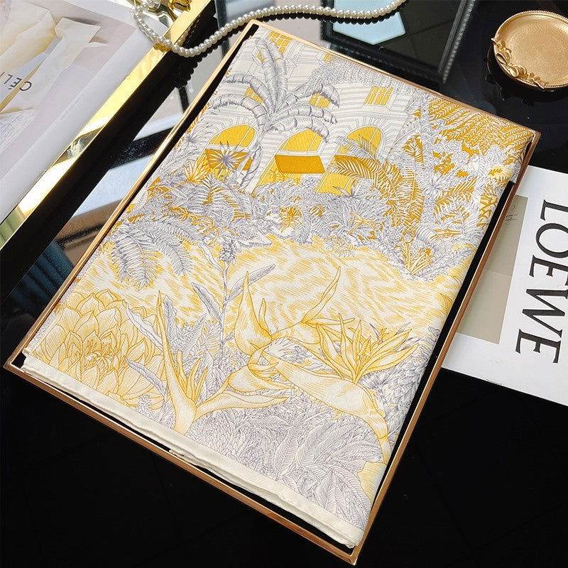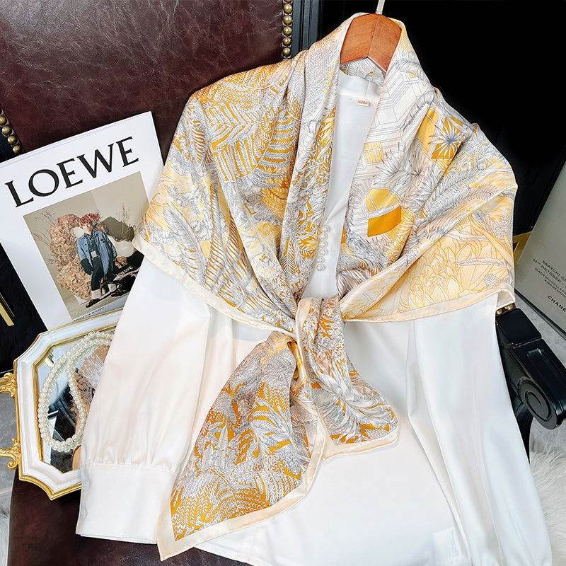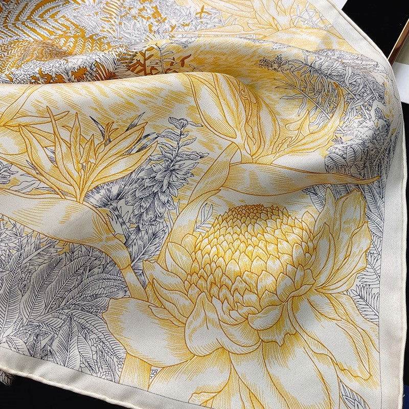 Mulberry Silk 14 Momme Square Scarf Vibrant Floral Gold 88×88 cm
