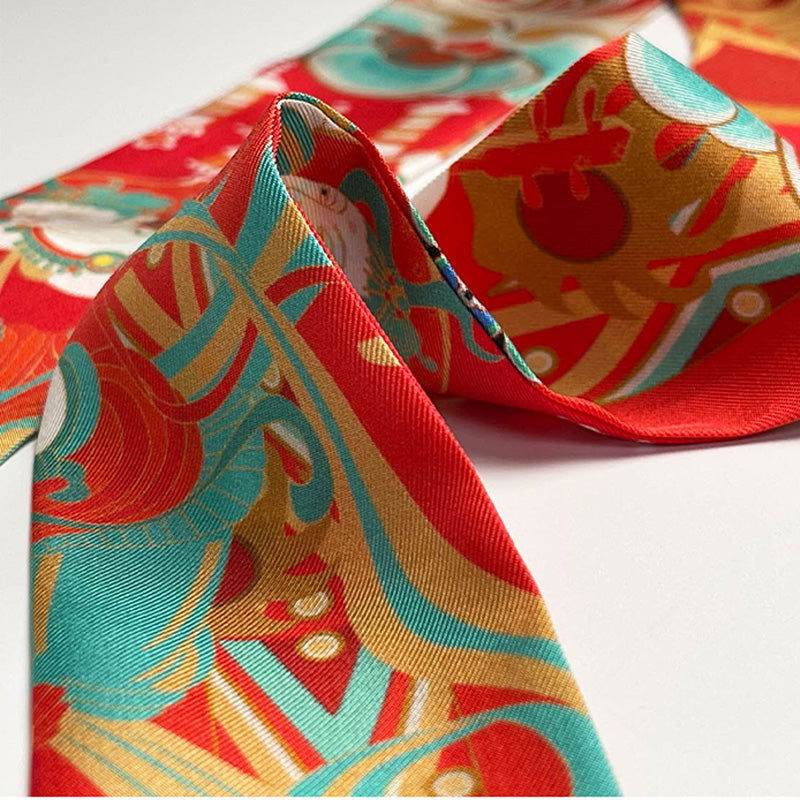 Mulberry Silk 16 Momme Dunhuang Deer Silk Narrow Scarf 120x5cm